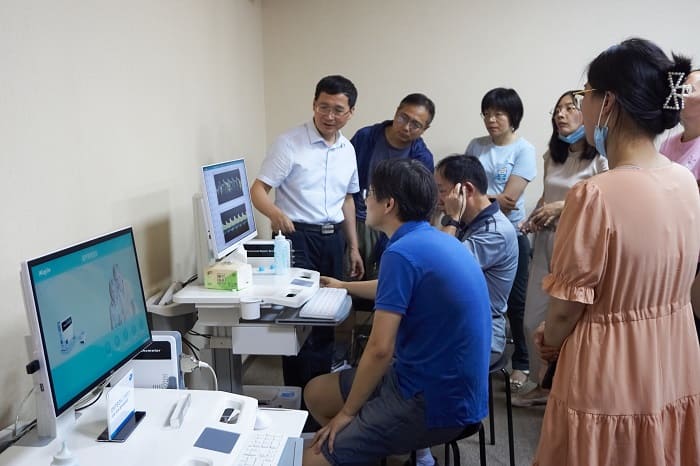 公司領(lǐng)導(dǎo)對(duì)專(zhuān)家們蒞臨指導(dǎo)表示熱烈歡迎,研發(fā)工程師為專(zhuān)家們介紹了南京科進(jìn)的TCD儀及產(chǎn)品的臨床應(yīng)用,并作了現(xiàn)場(chǎng)操作演示,對(duì)有關(guān)技術(shù)問(wèn)題進(jìn)行了深入探討。