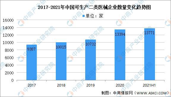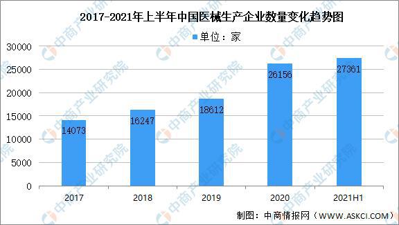 截至2021年6月底,全國(guó)醫(yī)療器械生產(chǎn)企業(yè)數(shù)量達(dá)27361家,較2020年底的26156家增長(zhǎng)4.6%。其中,可生產(chǎn)Ⅰ類(lèi)產(chǎn)品企業(yè)17900家,增長(zhǎng)7.8%;可生產(chǎn)Ⅱ類(lèi)產(chǎn)品13771家,增長(zhǎng)2.8%;可生產(chǎn)Ⅲ類(lèi)產(chǎn)品2047家,增長(zhǎng)0.5%。